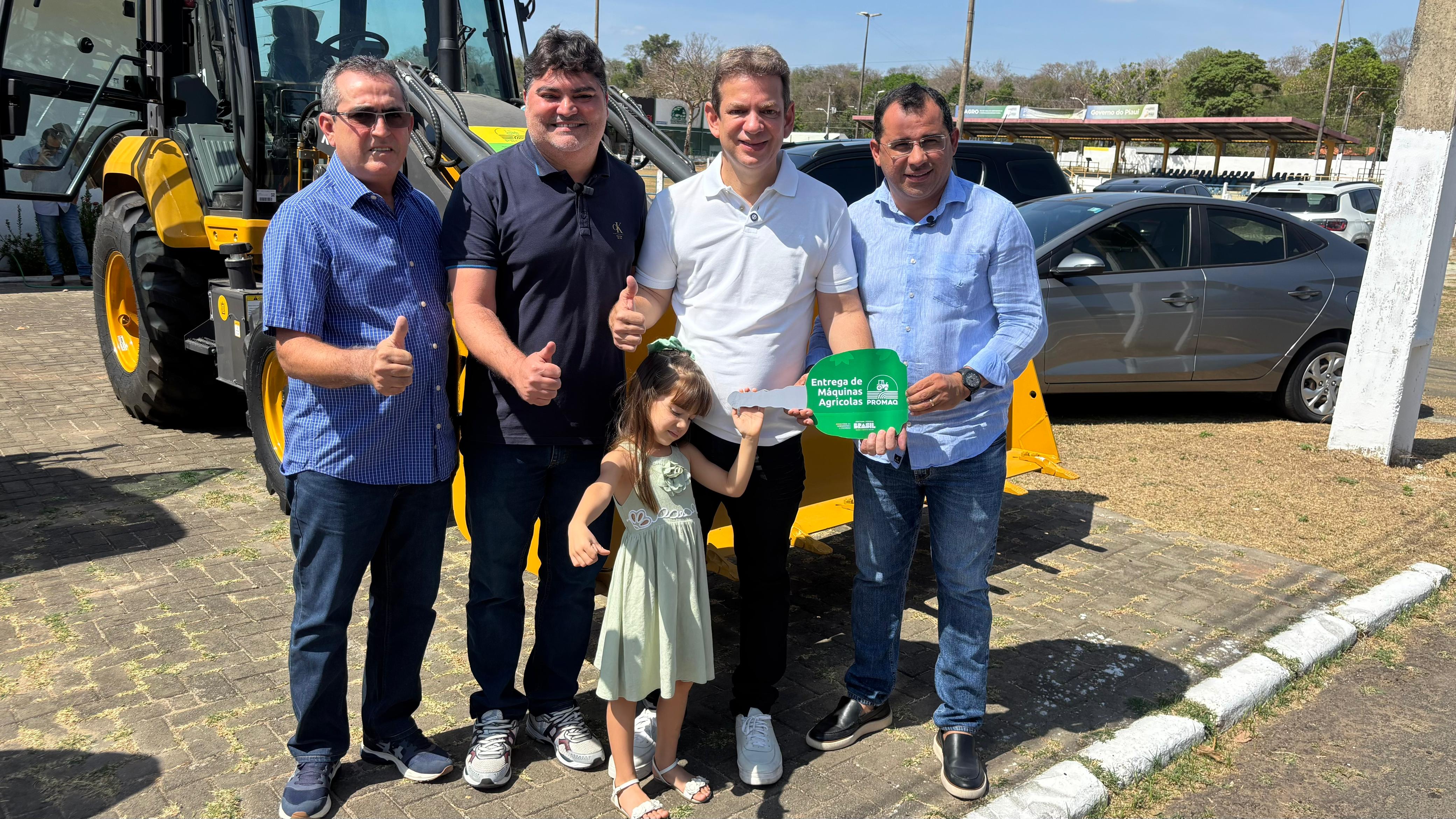 Prefeito Ramon Macedo celebra entrega de retroescavadeira para Anísio de Abreu