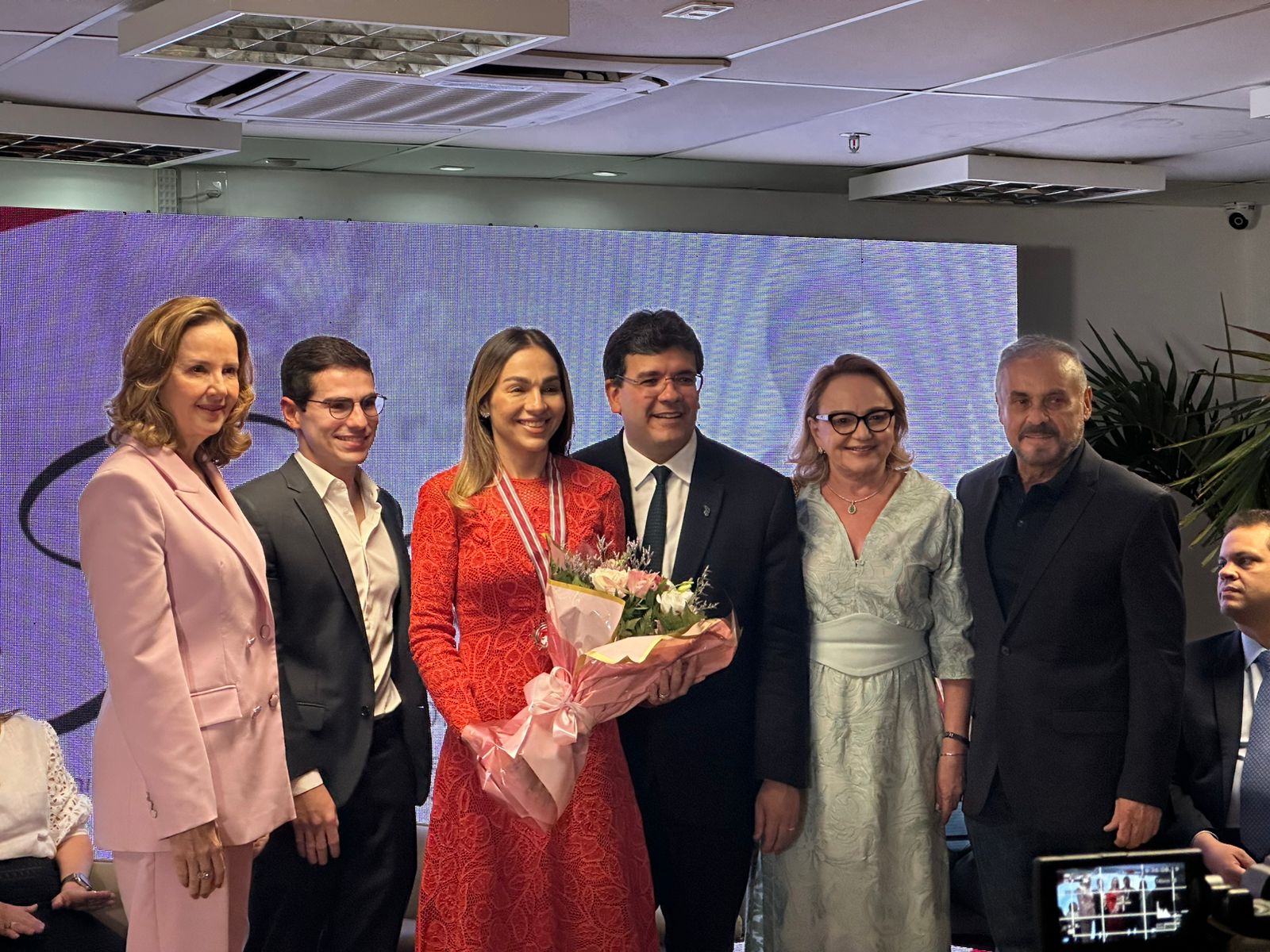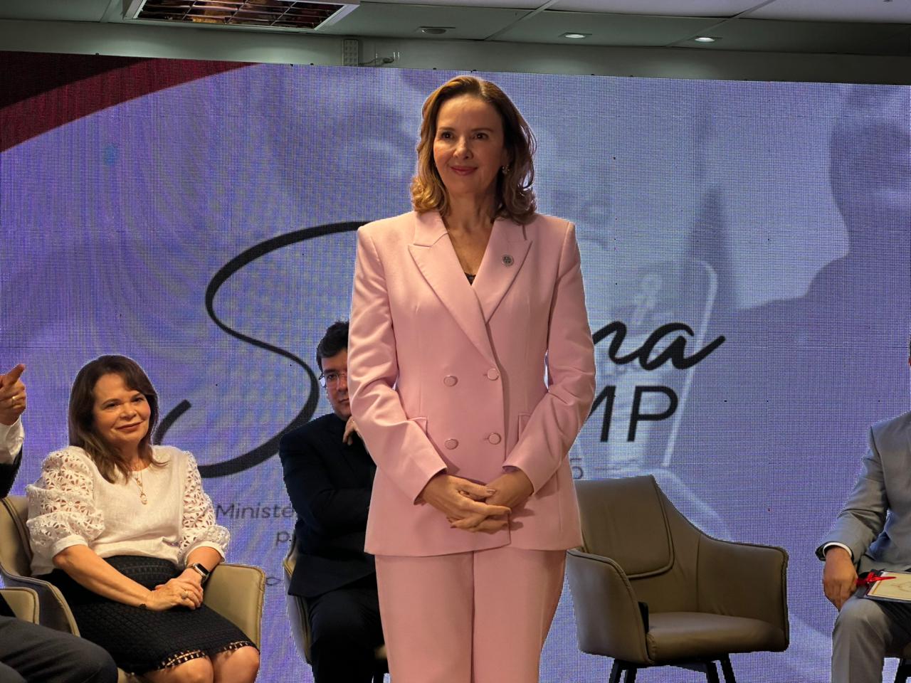 A procuradora-geral de Justiça do Ministério Público do Estado do Piauí (MPPI), Cláudia Seabra, destacou o caráter institucional e simbólico da cerimônia de entrega da Insígnia do Mérito do MPPI, realizada nesta sexta-feira (19/12). Em sua fala, ela agradeceu a presença das autoridades e convidados, com destaque para o governador Rafael Fonteles, ressaltando a importância do prestígio ao Ministério Público.