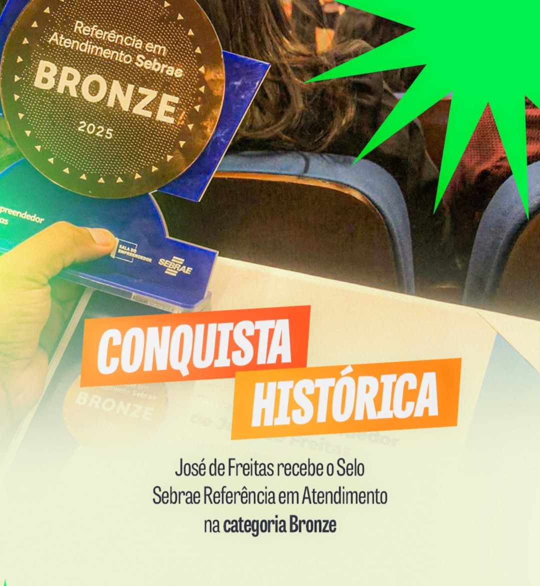 O município de José de Freitas foi reconhecido com o Selo Sebrae Referência em Atendimento, na categoria Bronze, certificação que destaca a qualidade dos serviços ofertados pela Sala do Empreendedor. O reconhecimento evidencia o compromisso da gestão municipal com o fortalecimento do empreendedorismo e o desenvolvimento econômico local.