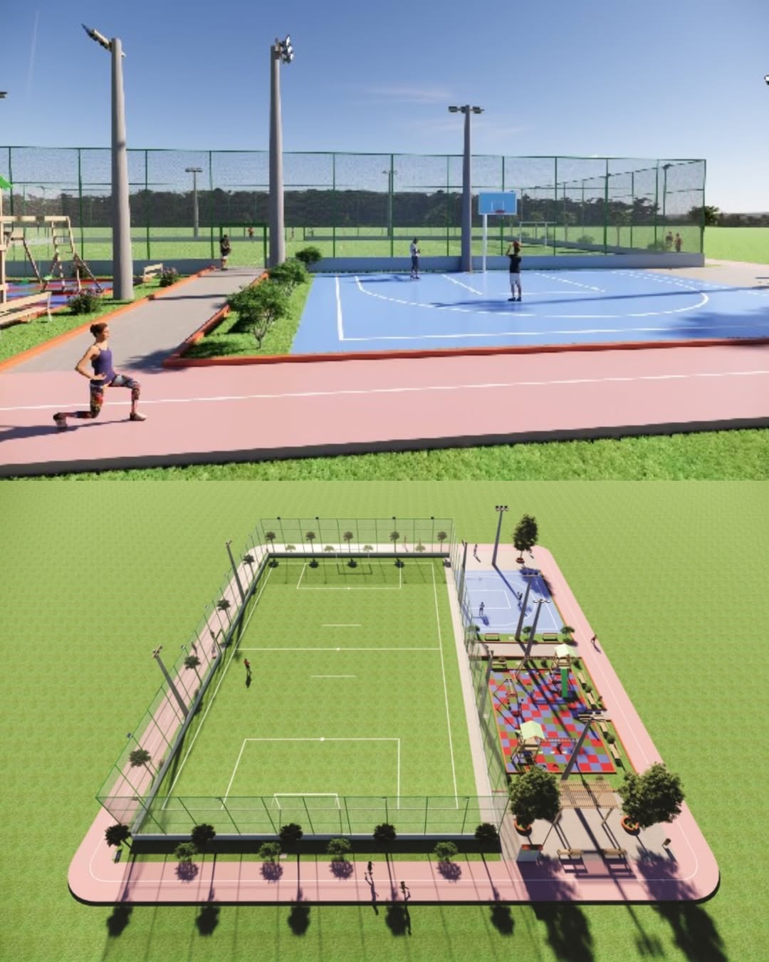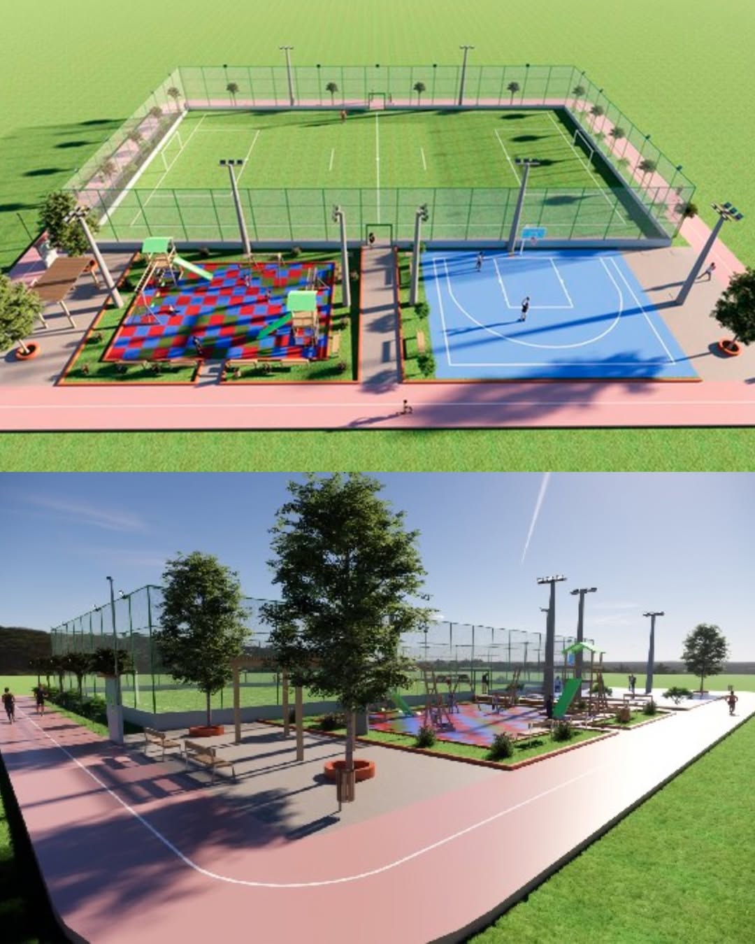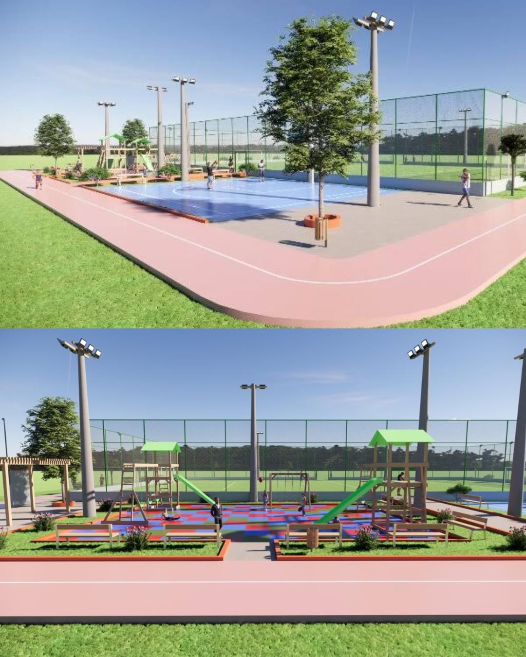 O projeto contará com playground, quadra de basquete, pista de caminhada, campo society e outras áreas estruturadas para atender crianças, jovens e adultos. O objetivo é promover saúde, convivência comunitária e incentivo à atividade física em um único espaço moderno e acessível.