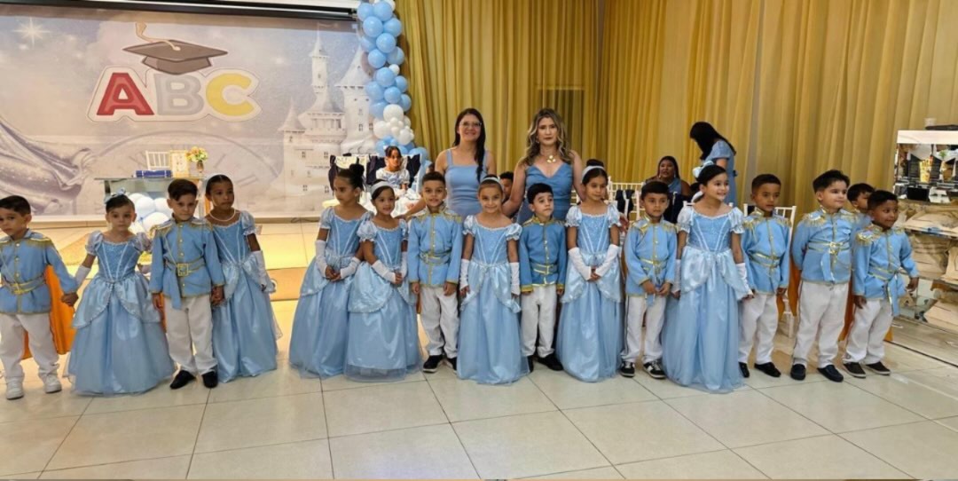 Com o tema “Era uma vez… A Cinderela”, o evento ganhou um clima de magia e encantamento. A decoração, as apresentações e toda a ambientação inspirada no clássico infantil tocaram o público e tornaram a noite ainda mais especial. A proposta buscou resgatar o mundo da fantasia para destacar a importância dos sonhos, da imaginação e do protagonismo das crianças nesta fase tão marcante.