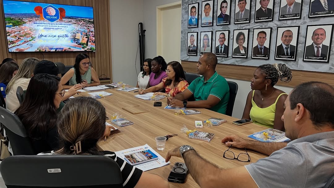 Na manhã da última terça-feira (23/09), o prefeito de Queimada Nova, Gilmar Macedo, participou de uma reunião com a Comissão Intersetorial do Selo UNICEF, acompanhado de sua equipe de gestão. O encontro teve como objetivo alinhar ações e estratégias voltadas para a promoção dos direitos de crianças e adolescentes no município.