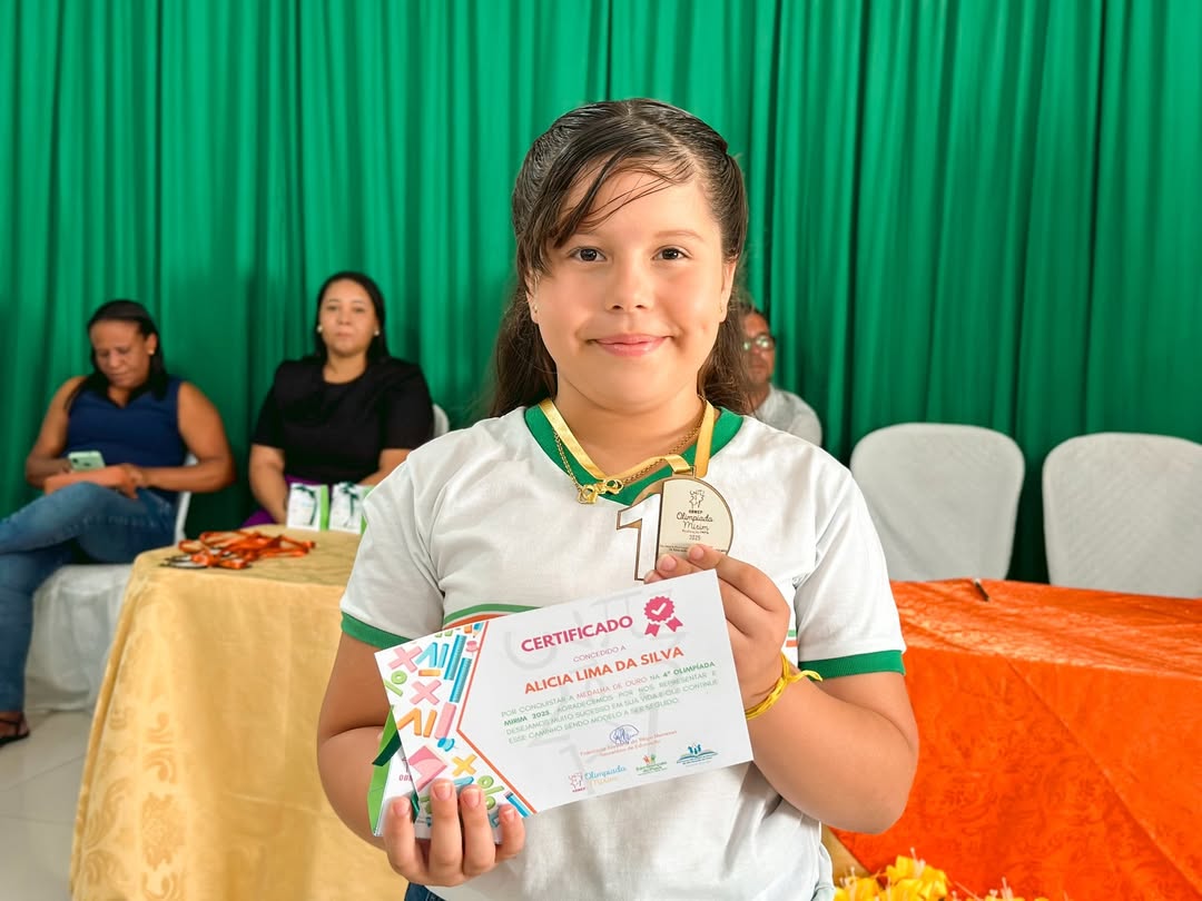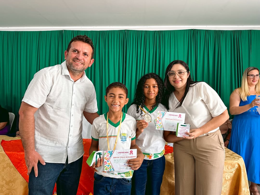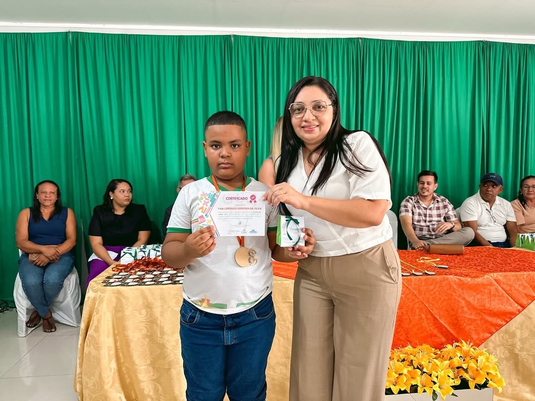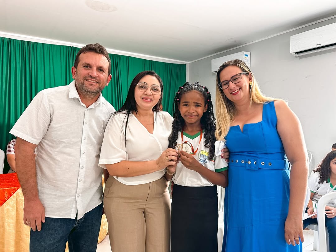 Durante a solenidade, a prefeita destacou a importância de incentivar o protagonismo estudantil e reforçou o orgulho em ver alunos alcançando resultados expressivos em uma olimpíada nacional.