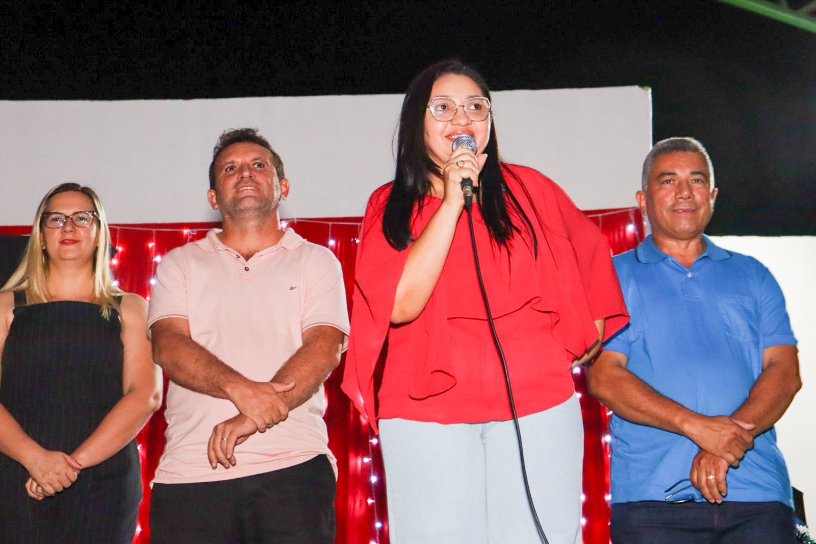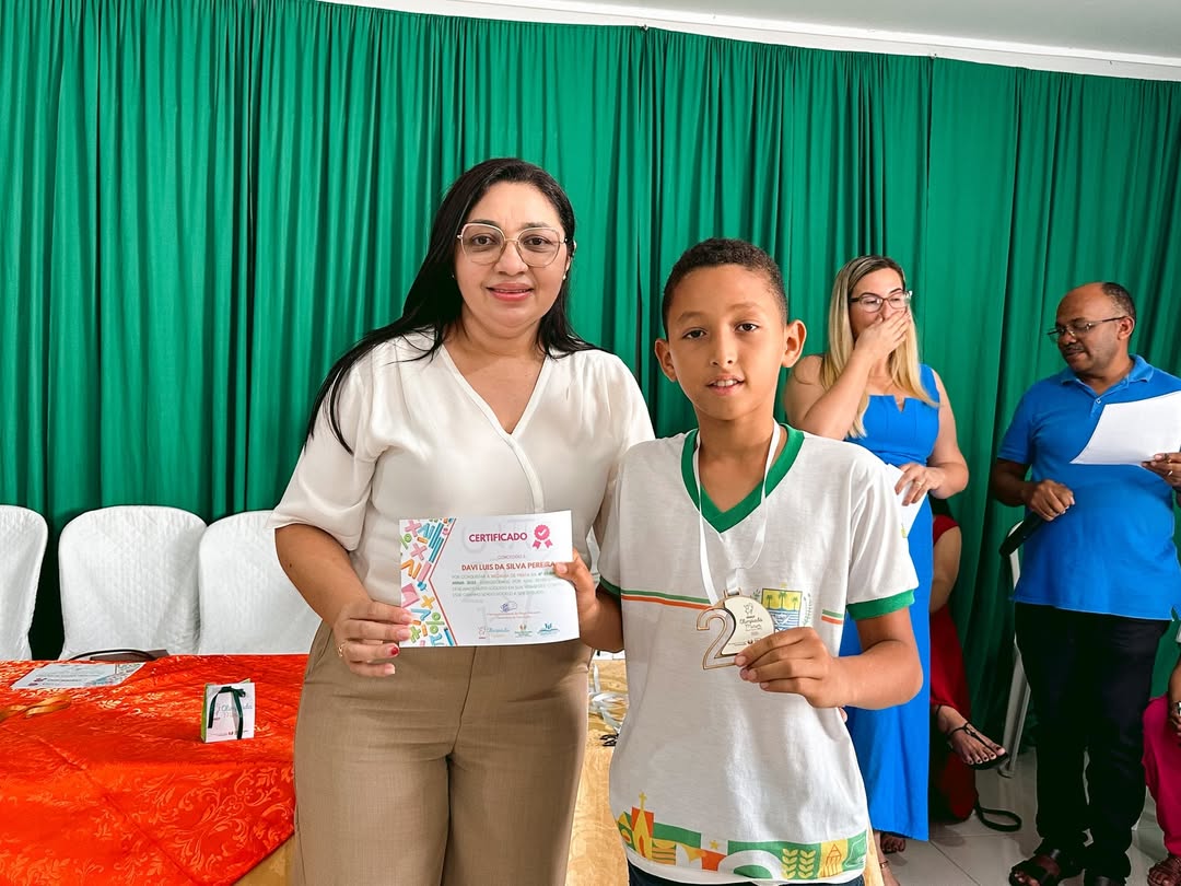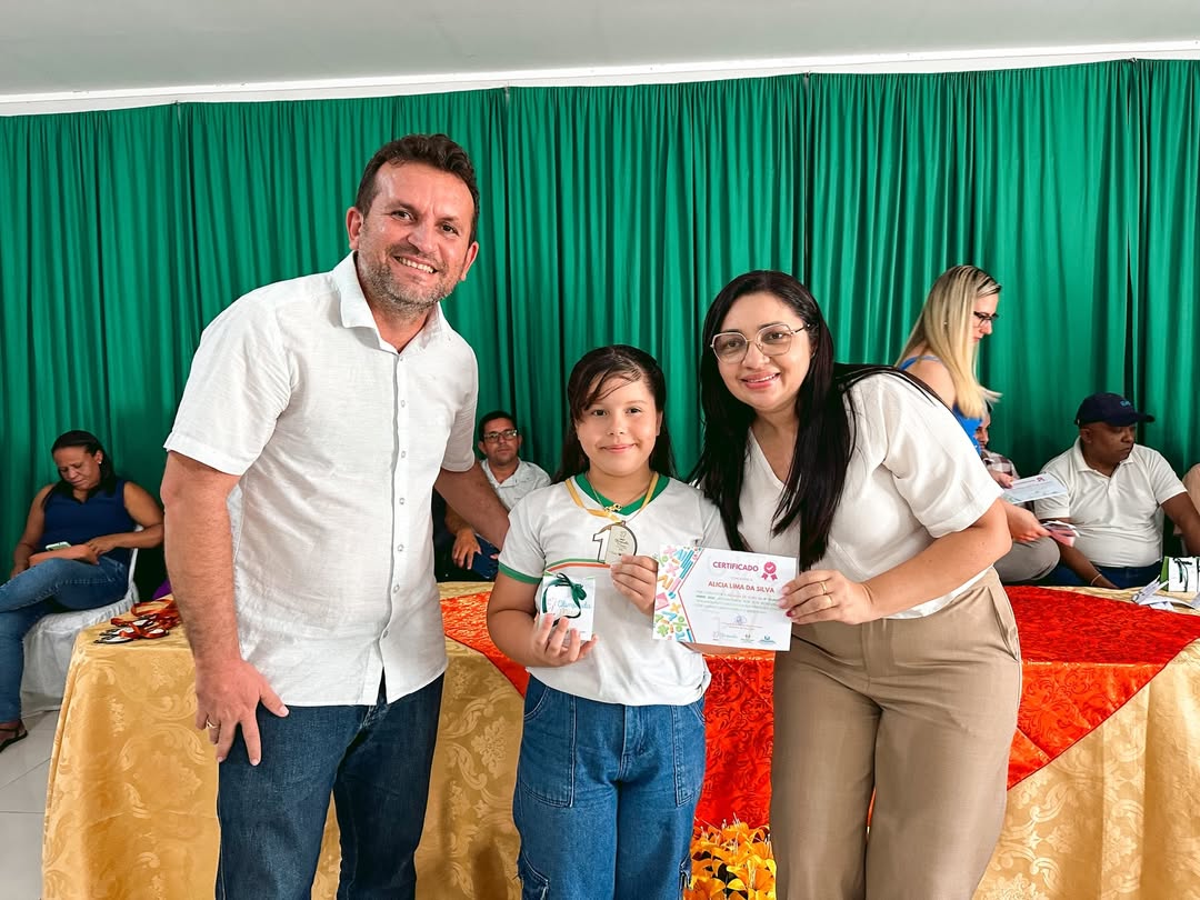 Durante a solenidade, a prefeita destacou a importância de incentivar o protagonismo estudantil e reforçou o orgulho em ver alunos alcançando resultados expressivos em uma olimpíada nacional.