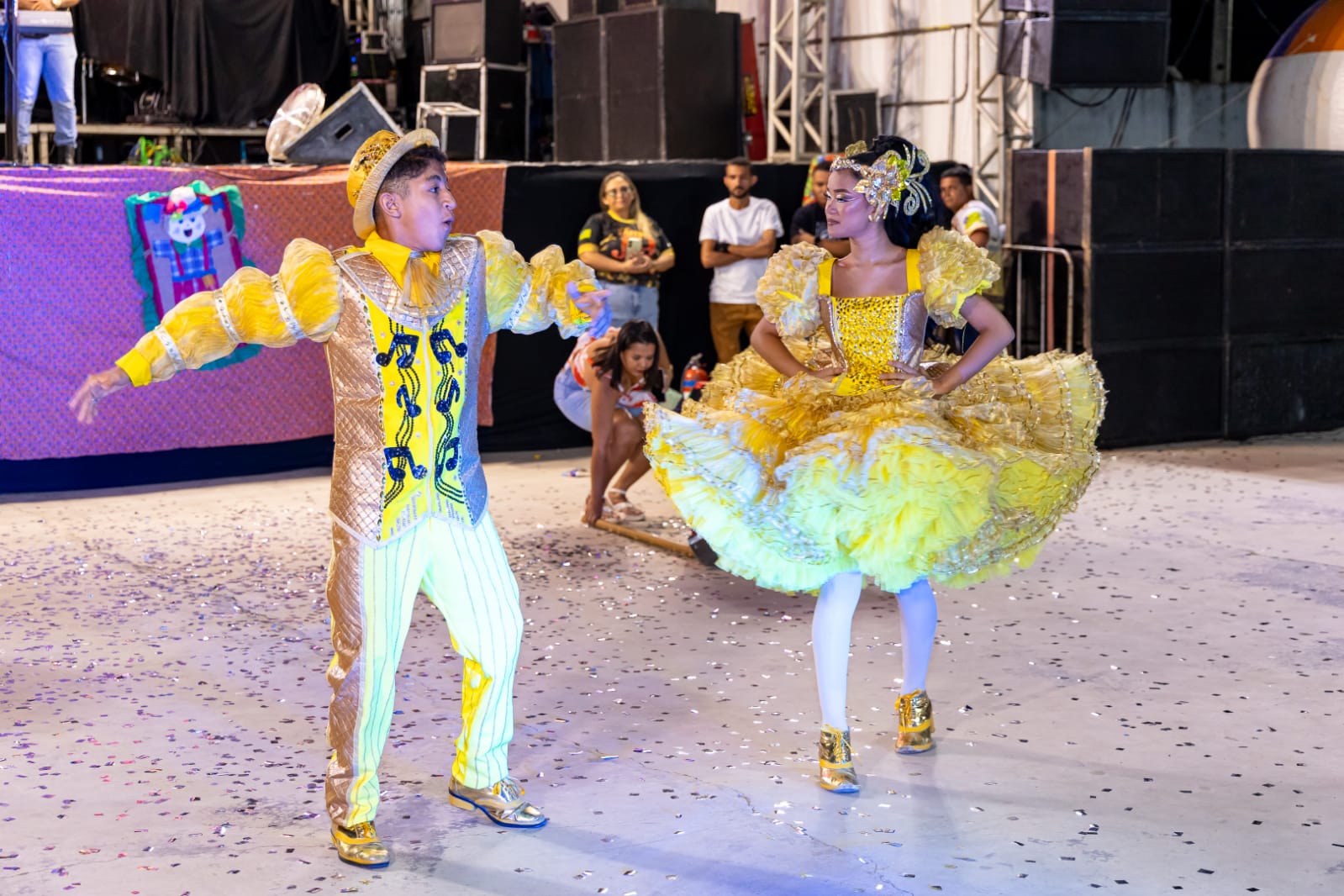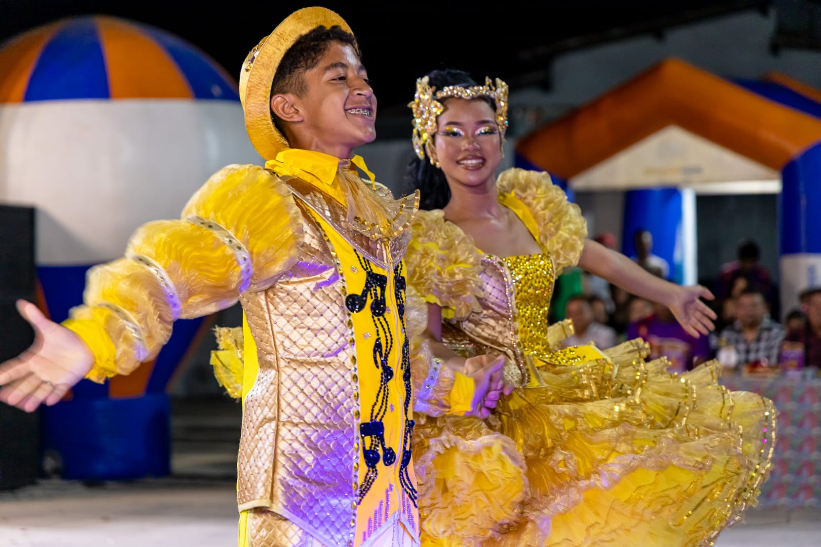O casal de noivos infantil Jorge Fhelipe e Myrla Vitória, representantes do grupo Coração Junino de Valença. Logo após, a Rainha da Diversidade 2024, Jady Garcia.